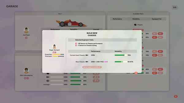 Build a winning team with drivers, a head engineer and a crew chief. Every hire comes with rich personality traits that affect everything from finances to car performance and skill behind the wheel.
